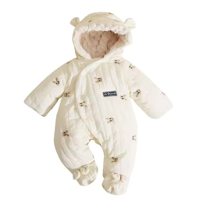Der weiche Baumwoll-Winteranzug wurde speziell entwickelt, um Ihr Kind an kalten Tagen warm und komfortabel zu halten. Dank der weichen Baumwolle und des niedlichen Tiermusters vereint der Anzug Wärme mit einem süßen Look.