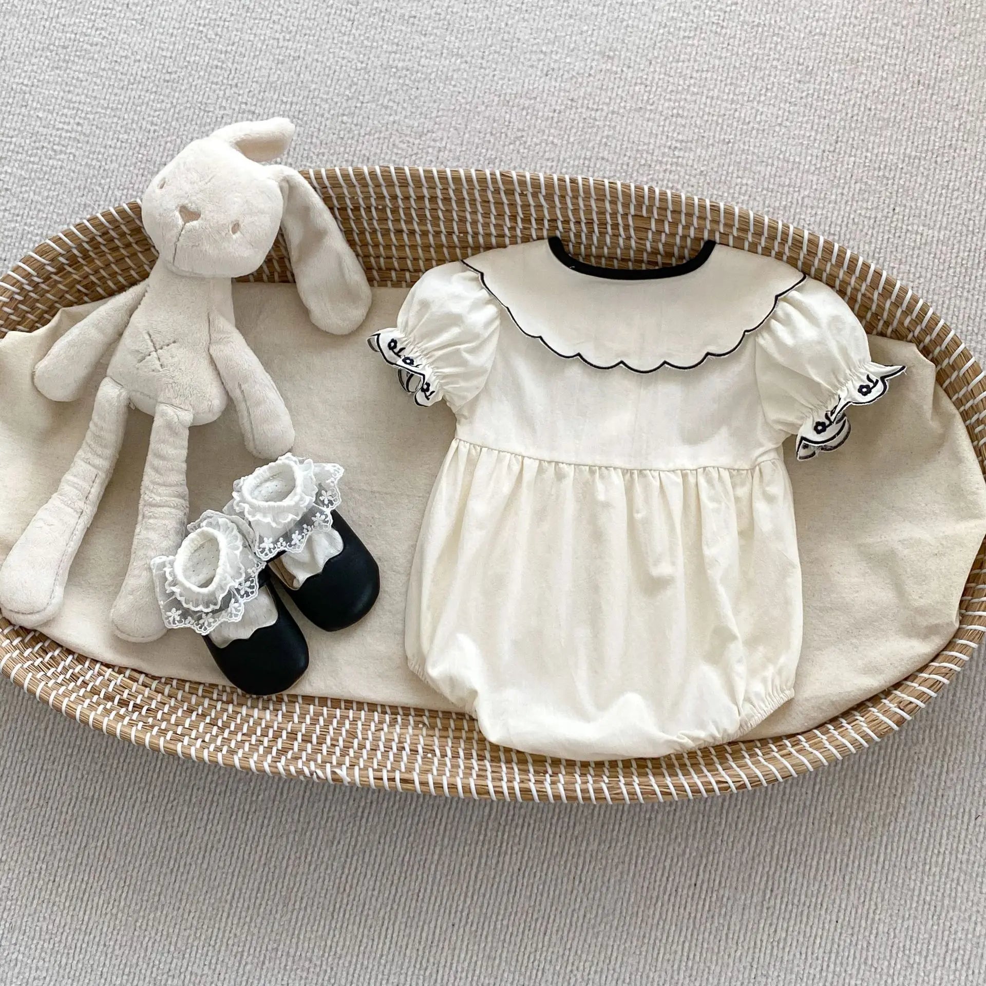 Sommer-Strampler für Baby-Mädchen – Besticktes Revers